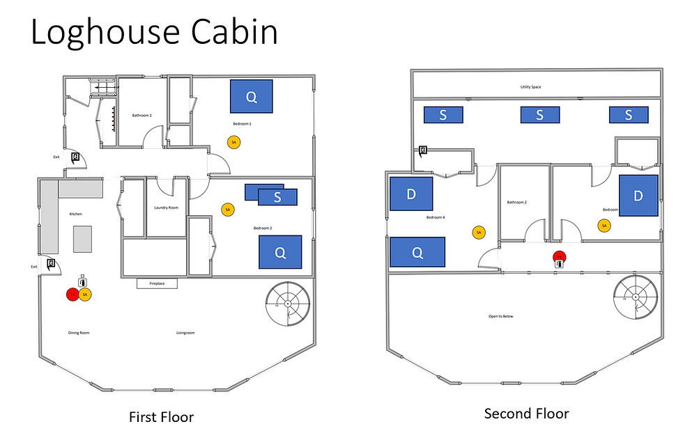 A guest favorite and one of our largest cabins is the Main House. A 3-bedroom cabin plus a loft (1 queen bed, 1 double bed, 2 twin beds in the downstairs bedrooms, and 3 single cot style beds in the loft).